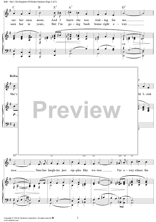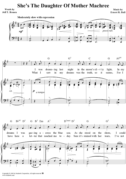 Digital Sheet Music for She's the Daughter of Mother Machree by Jeff T. Branen, Ernest R. Ball scored for Piano/Vocal; id:109258