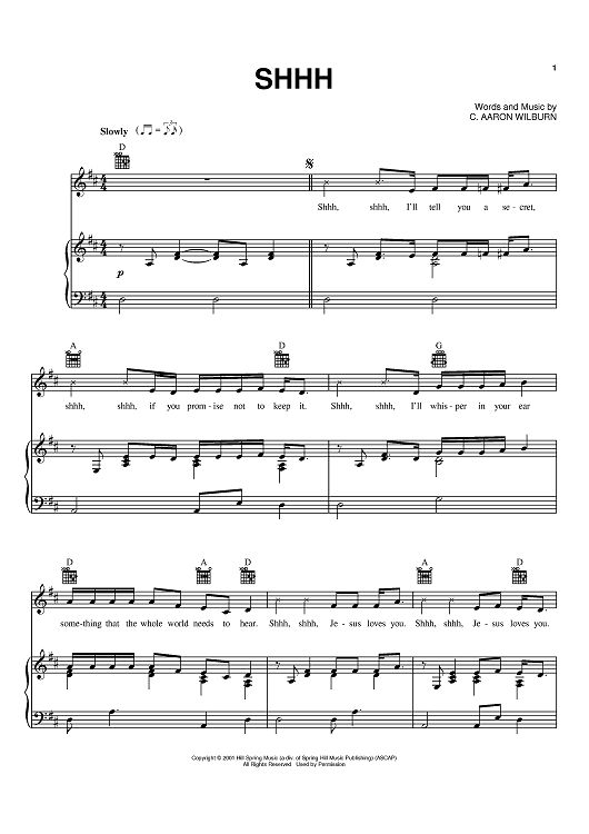Digital Sheet Music for Shhh by C. Aaron Wilburn scored for Piano/Vocal/Chords; id:373743