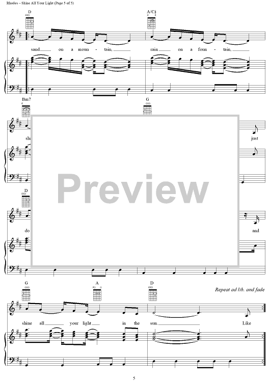 Digital Sheet Music for Shine All Your Light by Kimmie Rhodes, Nielsen Chapman, Amy Grant scored for Piano/Vocal/Chords; id:255643