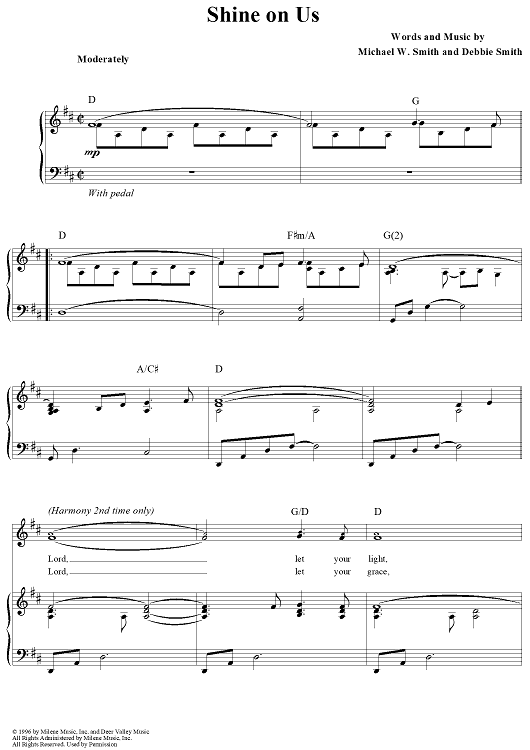 Digital Sheet Music for Shine On Us by Michael W. Smith, Deborah D. Smith, Phillips, Craig and Dean scored for Piano/Vocal/Chords; id:119637