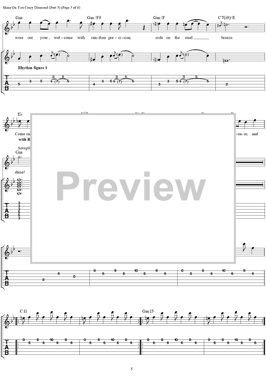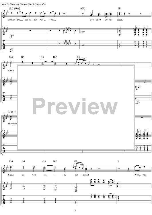 "Shine On You Crazy Diamond (Part V)" Sheet Music by Pink Floyd