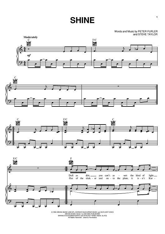 Digital Sheet Music for Shine by Peter Furler, Steve Taylor, Newsboys scored for Piano/Vocal/Chords; id:371756