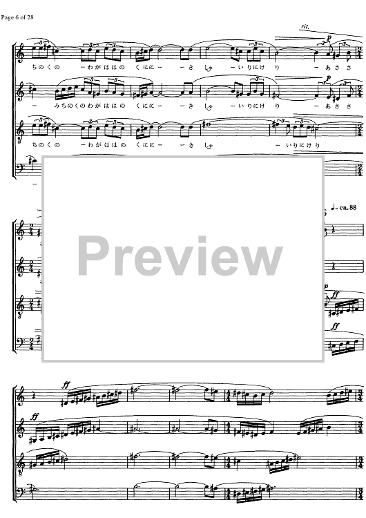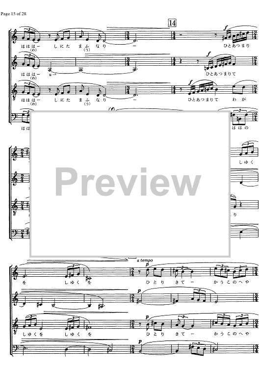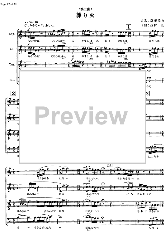 Digital Sheet Music for Shinitamau Haha - Score by , Akira Nishimura scored for SATB Choir; id:337917