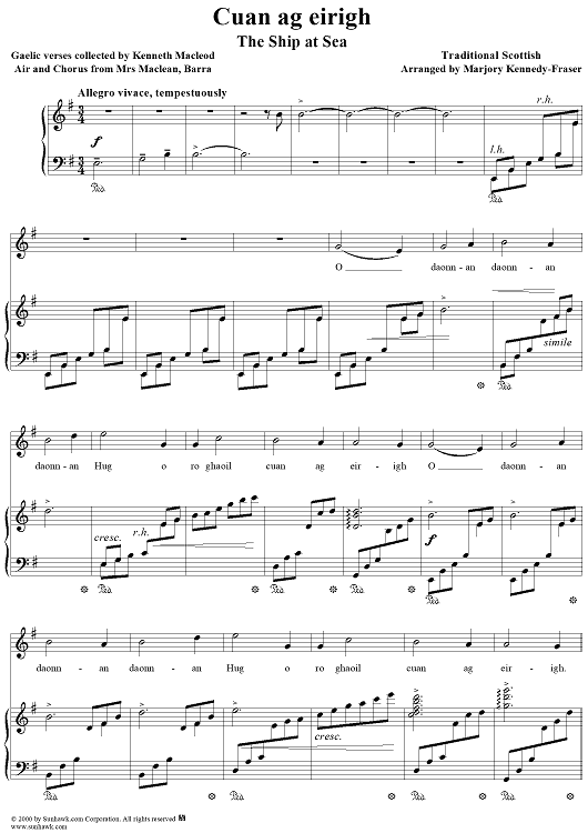 Digital Sheet Music for Ship at Sea by Marjory Kennedy-Fraser, Traditional scored for Piano/Vocal; id:234743