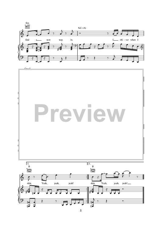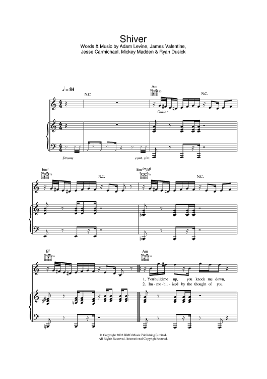 Digital Sheet Music for Shiver by Maroon 5 scored for Piano/Vocal/Chords; id:378499