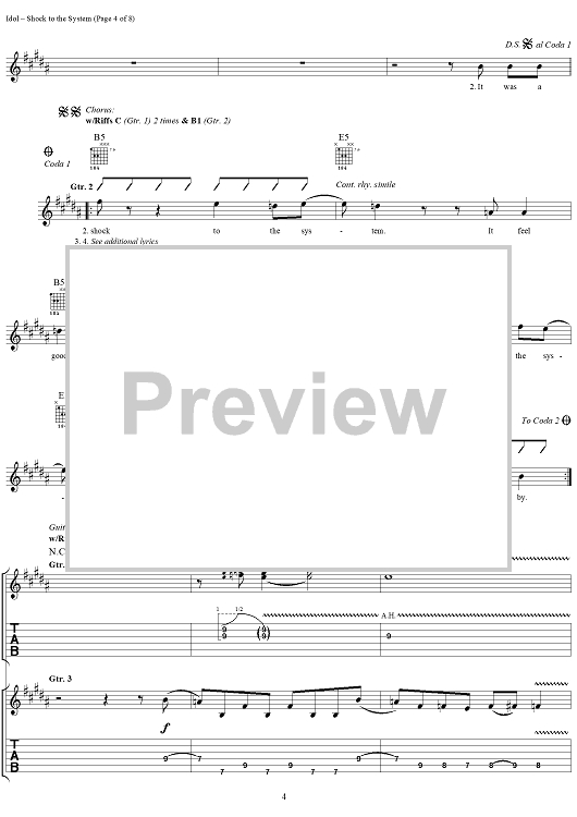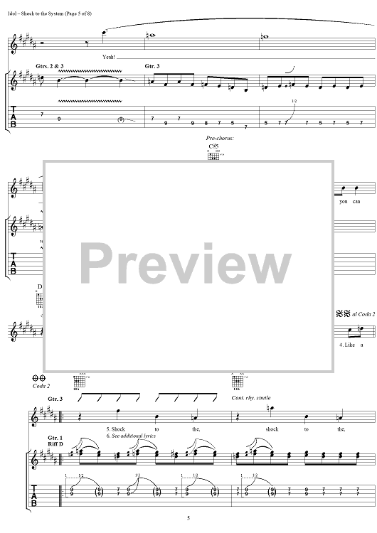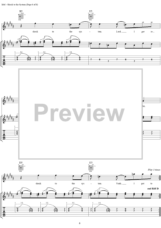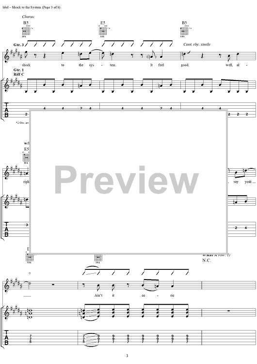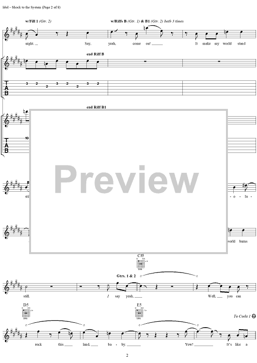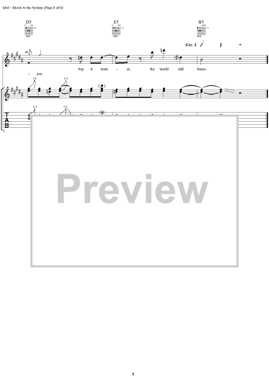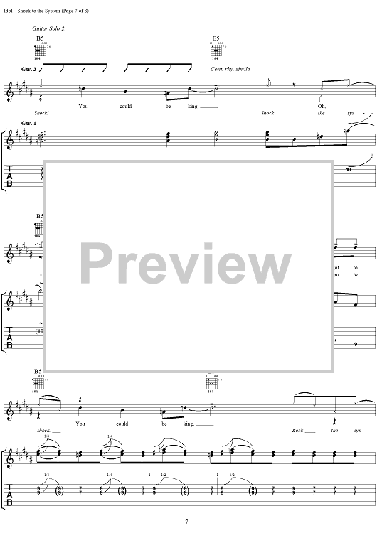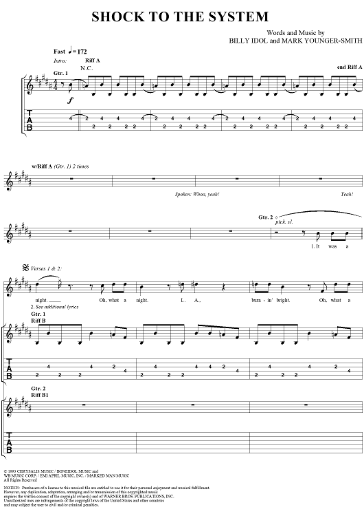 Digital Sheet Music for Shock to the System by Billy Idol, Mark Younger-Smith scored for Guitar Tab/Vocal; id:287804