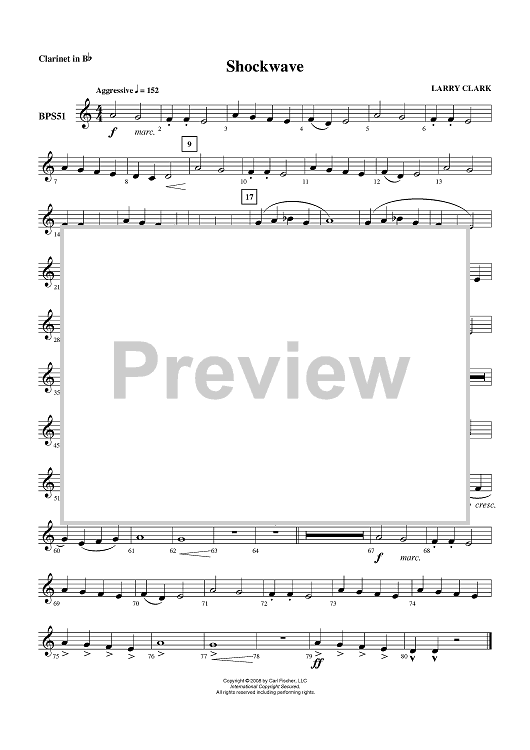 Digital Sheet Music for Shockwave - Clarinet in B-flat by Larry Clark scored for Concert Band; id:408856