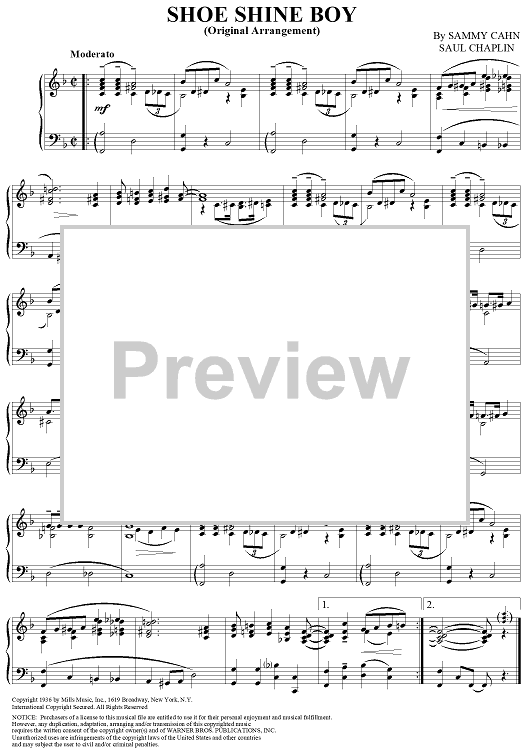 Digital Sheet Music for Shoe Shine Boy (Original) by Sammy Cahn, Fats Waller, Saul Chaplin scored for Piano Solo; id:313663