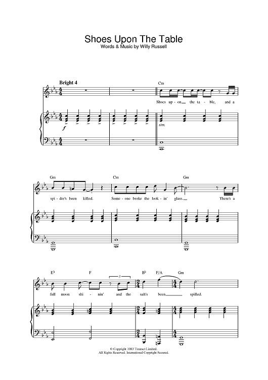 Digital Sheet Music for Shoes Upon The Table by Kiki Dee scored for Piano/Vocal/Chords; id:377520