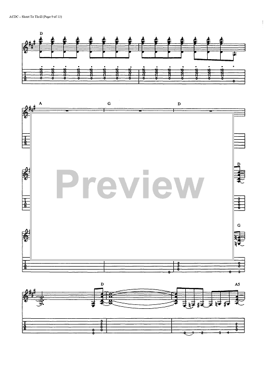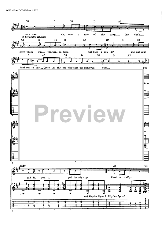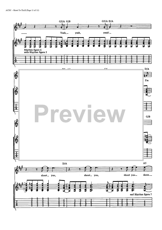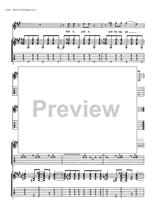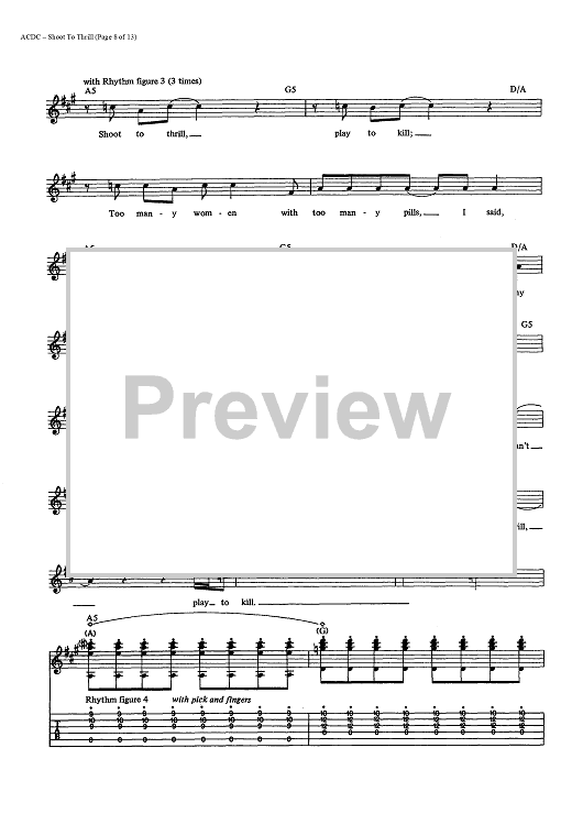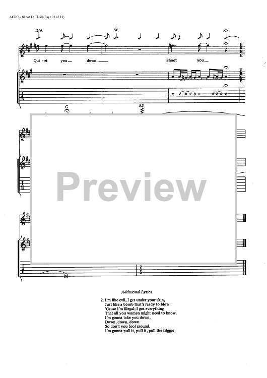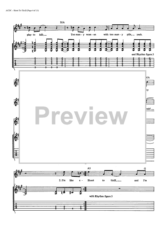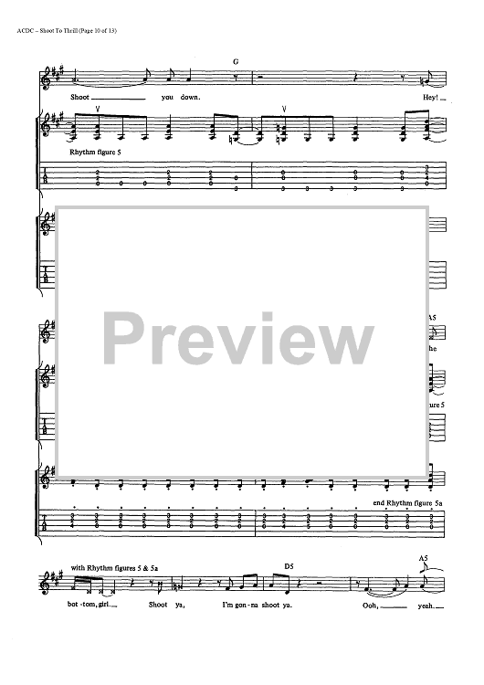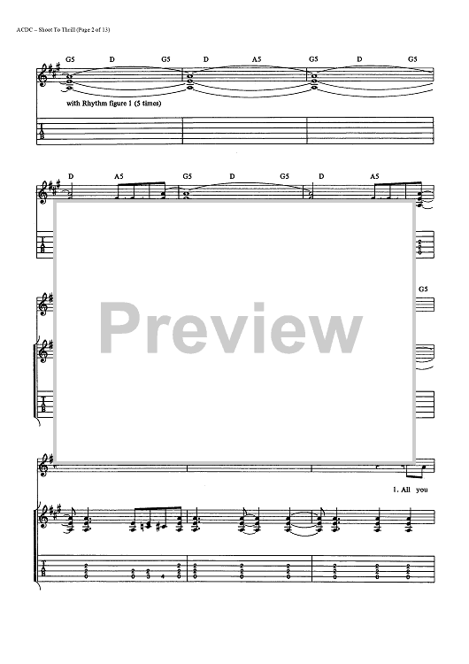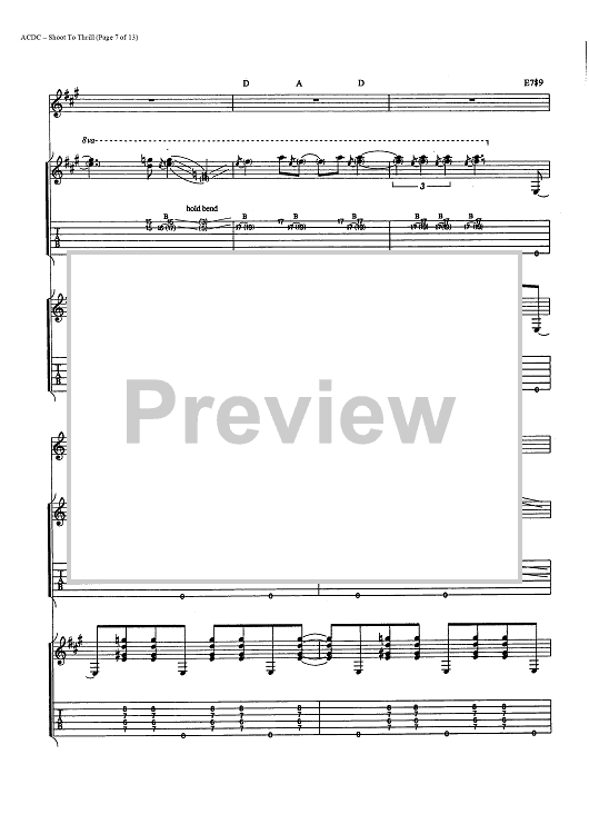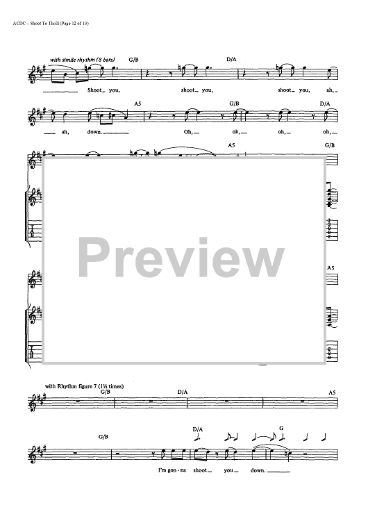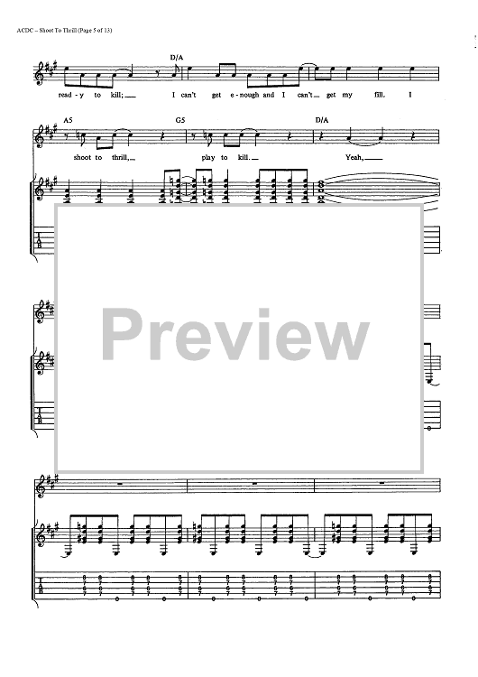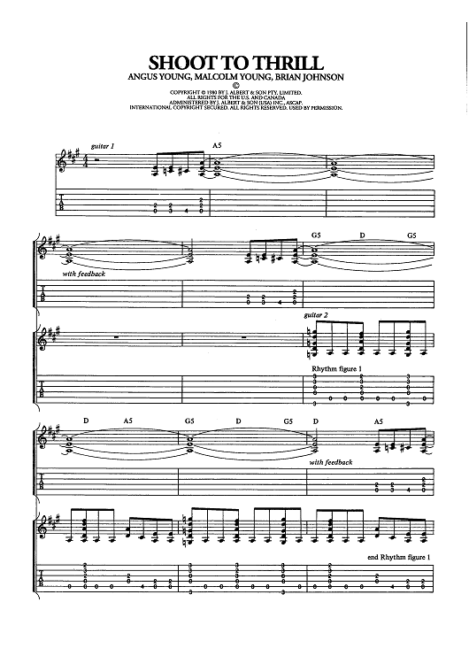 Digital Sheet Music for Shoot To Thrill by AC/DC, Brian Johnson, Angus Young, Malcolm Young scored for Guitar Tab/Vocal; id:437549