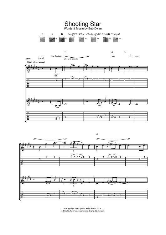 Digital Sheet Music for Shooting Star by Bob Dylan scored for Guitar Tab; id:380671