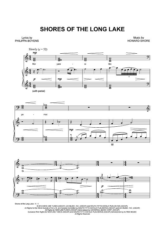 Digital Sheet Music for Shores of the Long Lake by Howard Shore, Philippa Boyens scored for Piano; id:449571