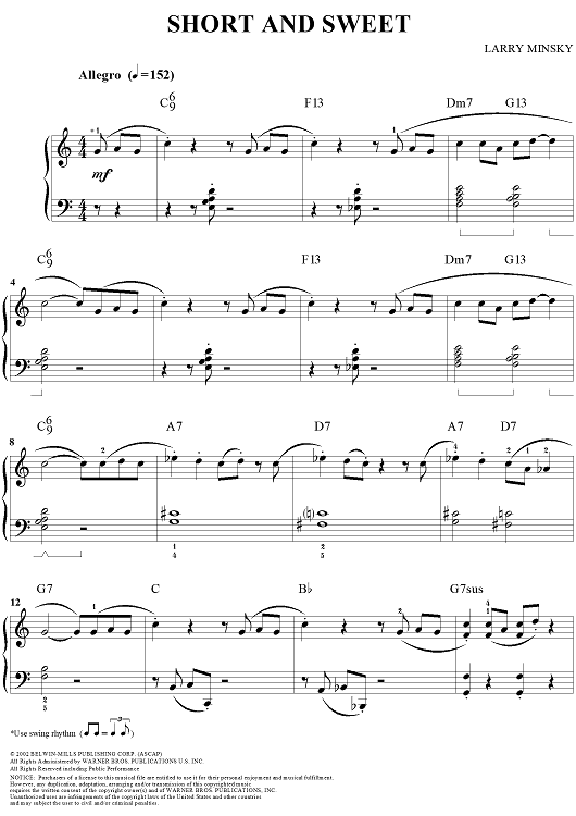 "Short and Sweet" Sheet Music by Larry Minsky