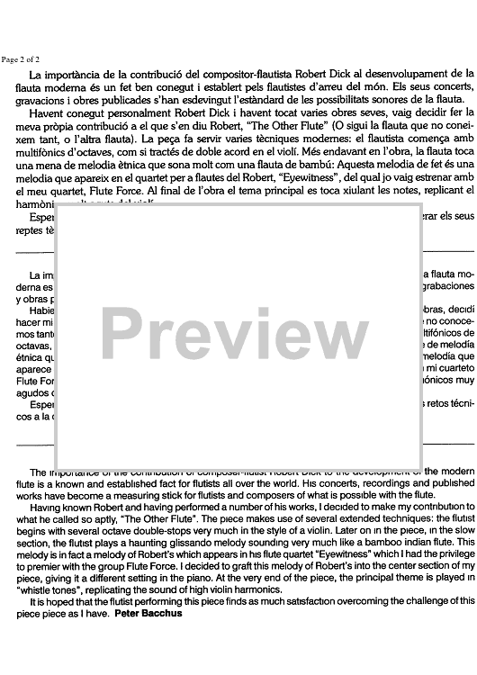 "Short piece after Robert Dick - Preface" Sheet Music by Peter Bacchus