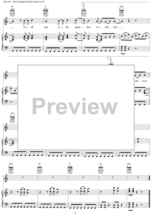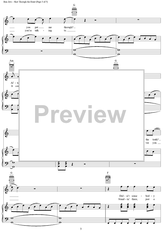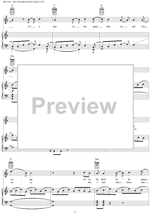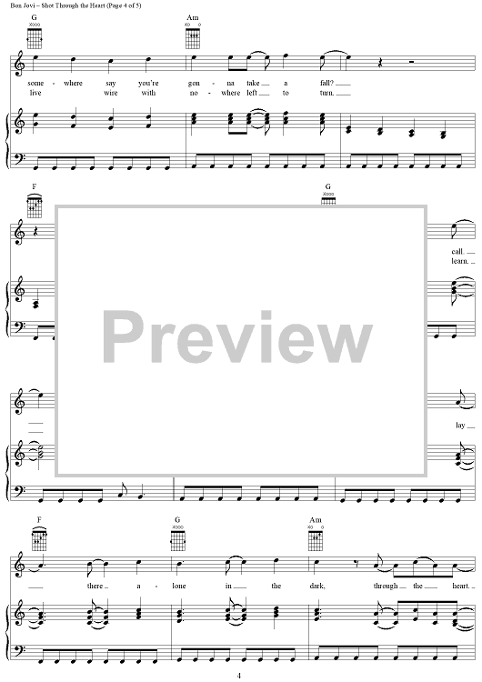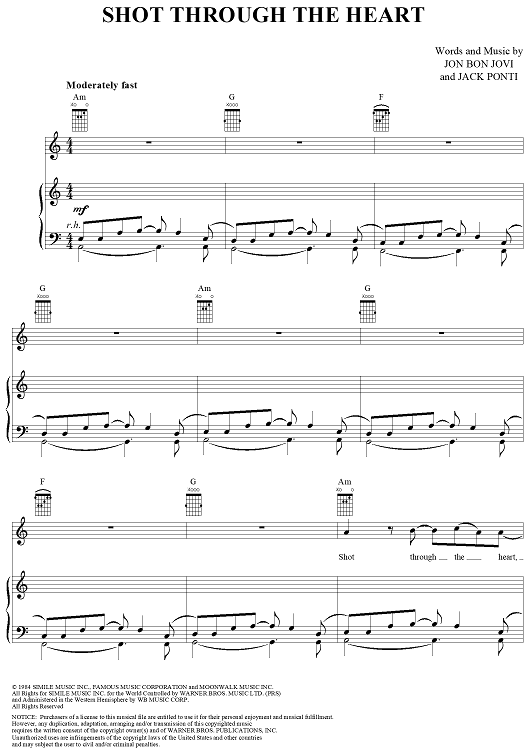 Digital Sheet Music for Shot Through the Heart by Bon Jovi, Jon Bon Jovi, Jack Ponti scored for Piano/Vocal/Chords; id:293331