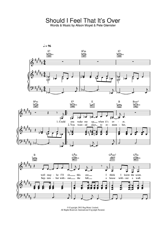 Digital Sheet Music for Should I Feel That It's Over by Alison Moyet scored for Piano/Vocal/Chords; id:377958