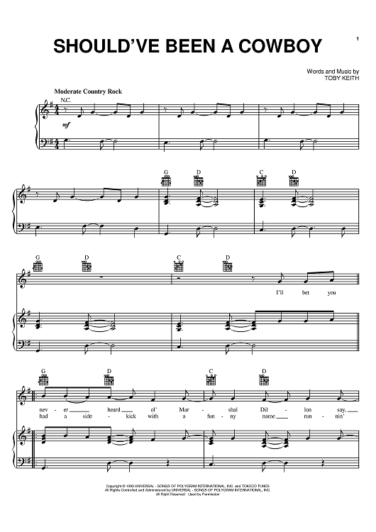 "Should've Been A Cowboy" Sheet Music by Toby Keith