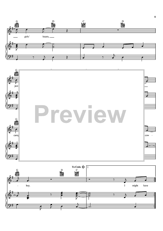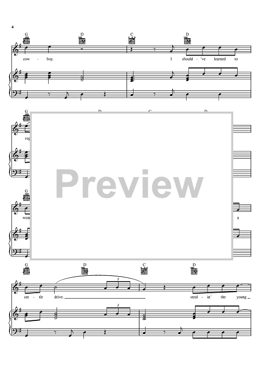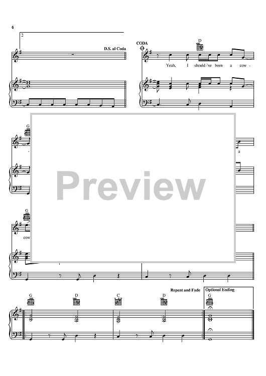 Digital Sheet Music for Should've Been A Cowboy by Toby Keith scored for Piano/Vocal/Chords; id:383378