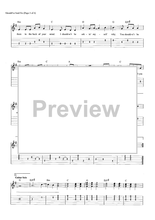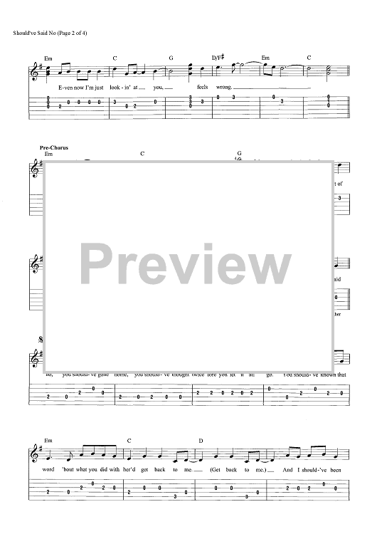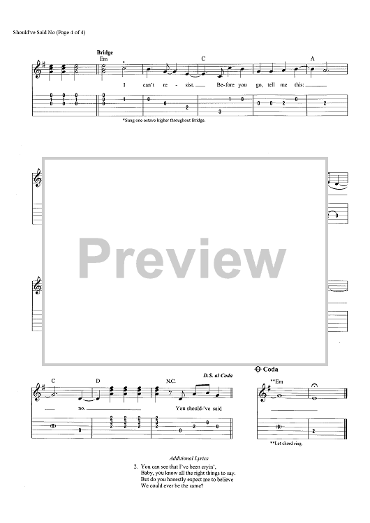 Digital Sheet Music for Should've Said No by Taylor Swift scored for Easy Guitar Tab/Vocal; id:466123