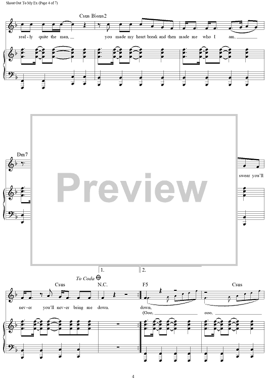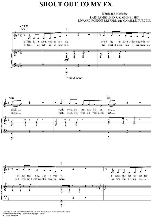 Digital Sheet Music for Shout Out To My Ex by Camille Purcell, Little Mix, Henrik Michelsen, Edvard Foerre Erfjord, Iain James scored for Piano/Vocal/Chords; id:462956