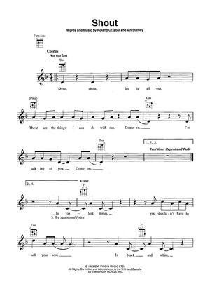 Digital Sheet Music for Shout by Roland Orzabal, Ian Stanley scored for Ukulele/Vocal; id:465331