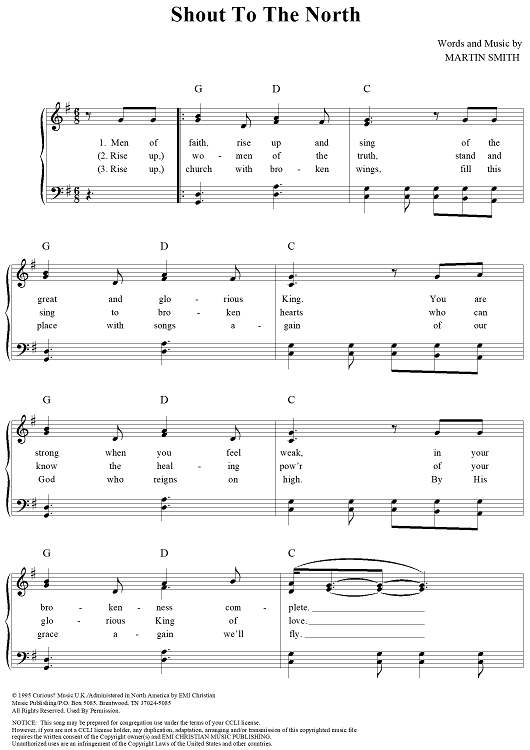 Digital Sheet Music for Shout to the North by Martin Smith scored for Piano/Vocal/Chords; id:258524
