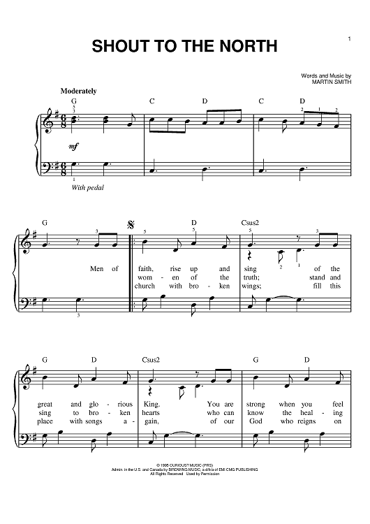 Digital Sheet Music for Shout To The North by Martin Smith, Delirious? scored for Easy Piano; id:401810