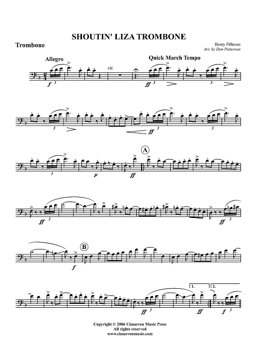 "Shoutin' Liza Trombone - Trombone" Sheet Music by Henry Fillmore
