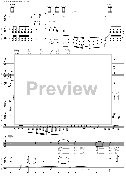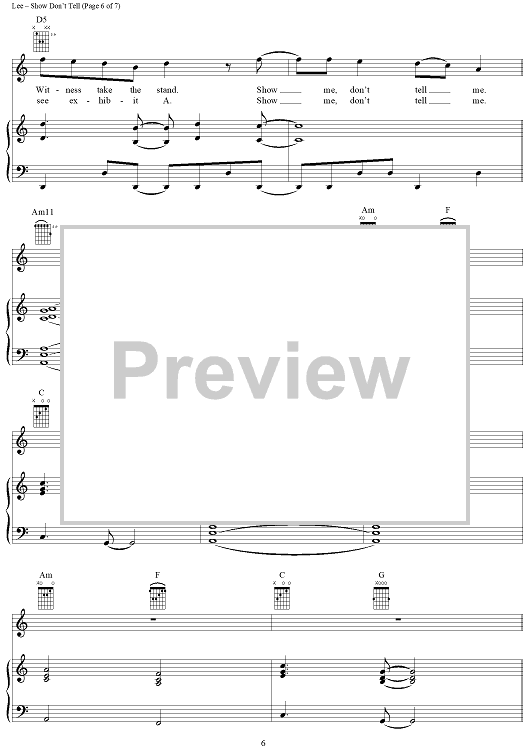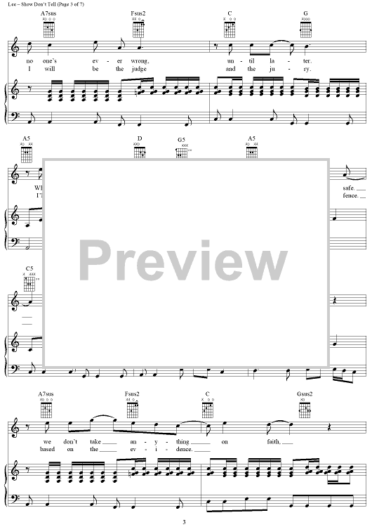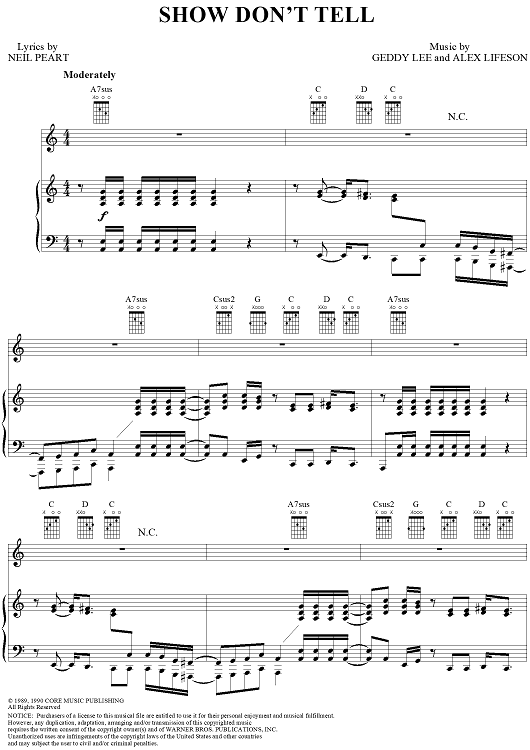 Digital Sheet Music for Show Don't Tell by Rush, Geddy Lee, Alex Lifeson, Neil Peart scored for Piano/Vocal/Chords; id:187721