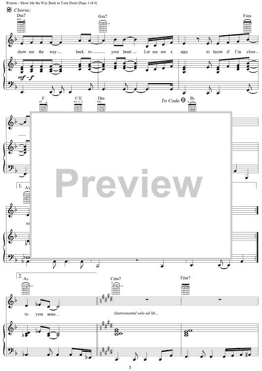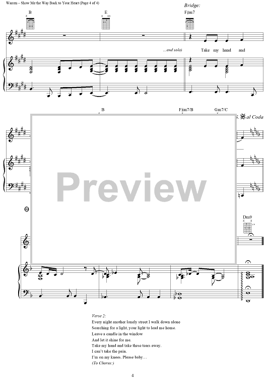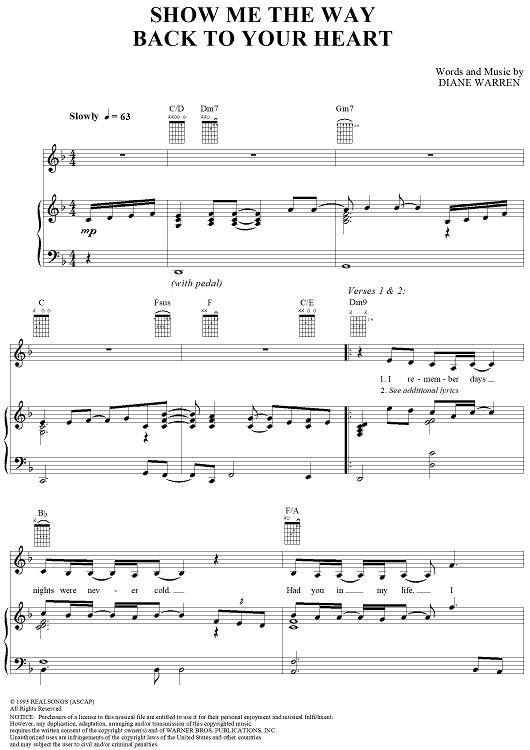 Digital Sheet Music for Show Me the Way Back to Your Heart by Diane Warren, Gloria Estefan scored for Piano/Vocal/Chords; id:234870