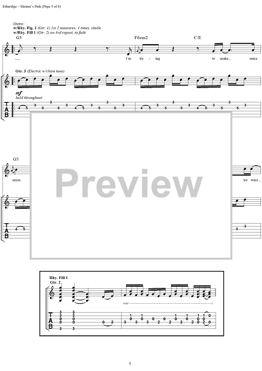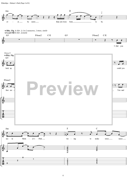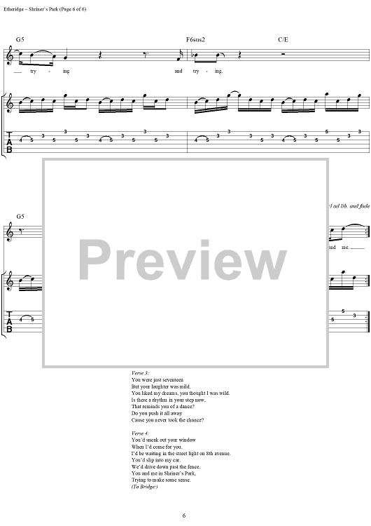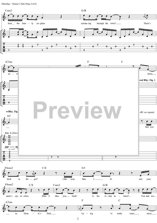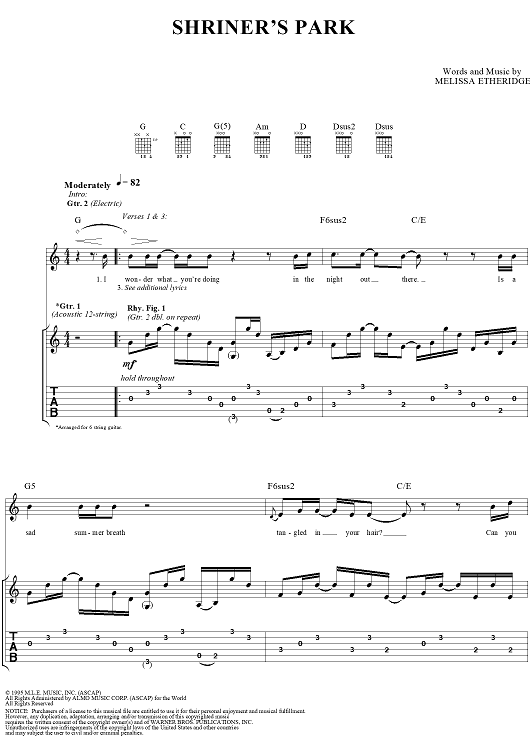 "Shriner's Park" Sheet Music by Melissa Etheridge
