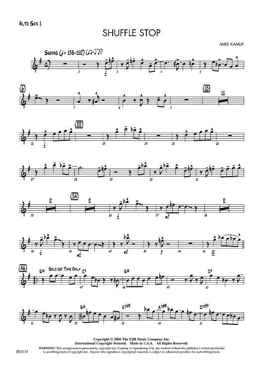 "Shuffle Stop - Alto Sax 1" Sheet Music by Mike Kamuf