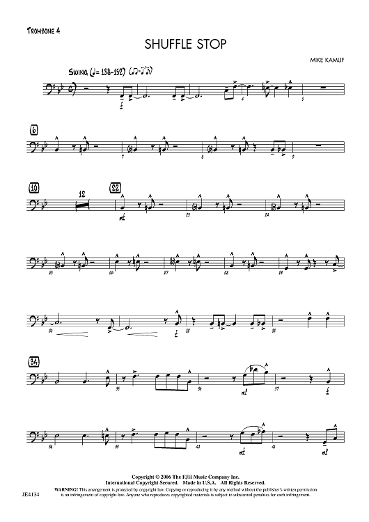 "Shuffle Stop - Opt. Trombone 4" Sheet Music by Mike Kamuf