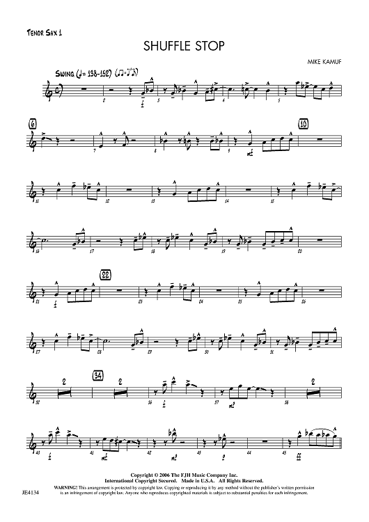 "Shuffle Stop - Tenor Sax 1" Sheet Music by Mike Kamuf