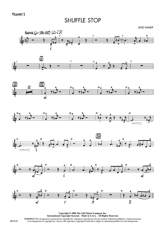 "Shuffle Stop - Trumpet 3" Sheet Music by Mike Kamuf