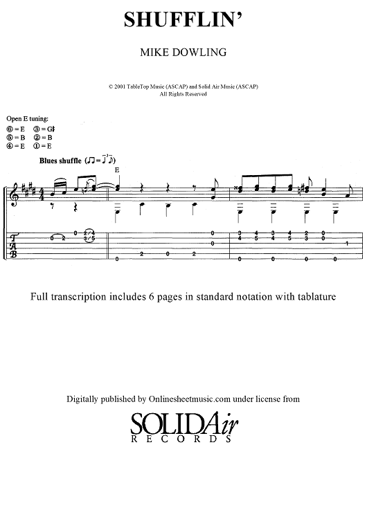 Digital Sheet Music for Shufflin' (With Embedded Audio) by Mike Dowling scored for Guitar Tab; id:451766