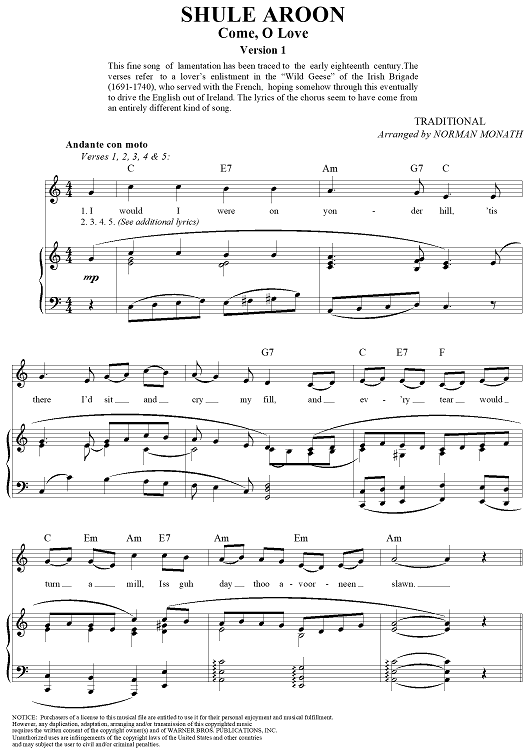 Digital Sheet Music for Shule Aroon, Version 1 by Norman Monath, Traditional scored for Piano/Vocal/Chords; id:261828