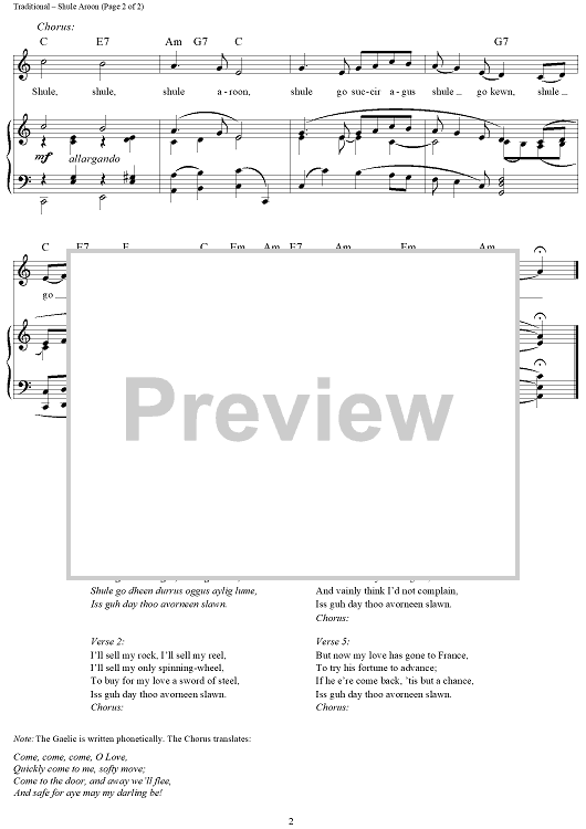 "Shule Aroon, Version 1" Sheet Music by Traditional
