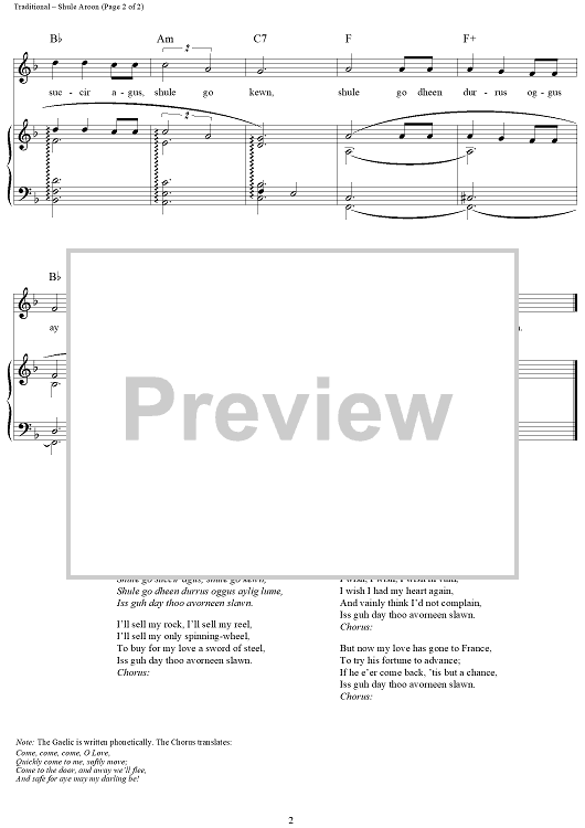 "Shule Aroon, Version 2" Sheet Music by Traditional