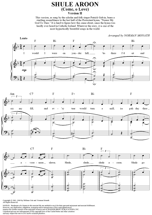 Digital Sheet Music for Shule Aroon, Version 2 by Norman Monath, Traditional scored for Piano/Vocal/Chords; id:234938