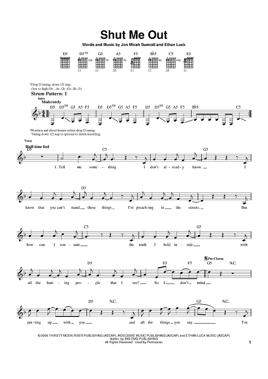 Digital Sheet Music for Shut Me Out by Jon Micah Sumrall, Kutless, Ethan Luck scored for Easy Guitar; id:398254