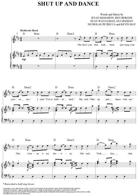 Digital Sheet Music for Shut Up and Dance by Ryan McMahon, Ben Berger, Eli Maiman, Nicholas Petricca, Kevin Ray, Walk the Moon scored for Piano/Vocal/Chords; id:449290