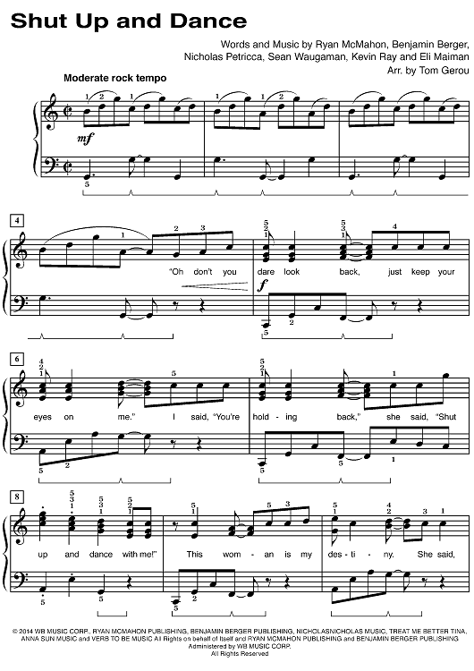 Digital Sheet Music for Shut Up and Dance by Ryan McMahon, Ben Berger, Sean Waugaman, Eli Maiman, Kevin Ray, Walk the Moon, Tom Gerou, Petricca Nicholas scored for Piano; id:501489