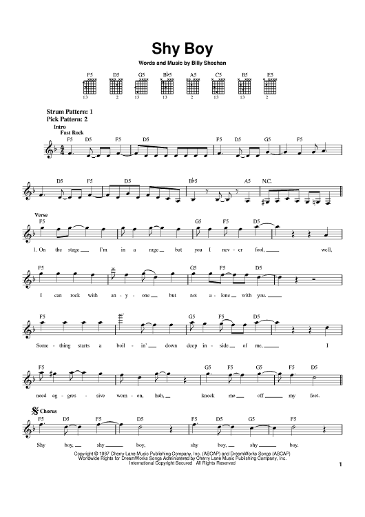 Digital Sheet Music for Shy Boy by David Lee Roth, Mr. Big, Billy Sheehan scored for Easy Guitar; id:370962