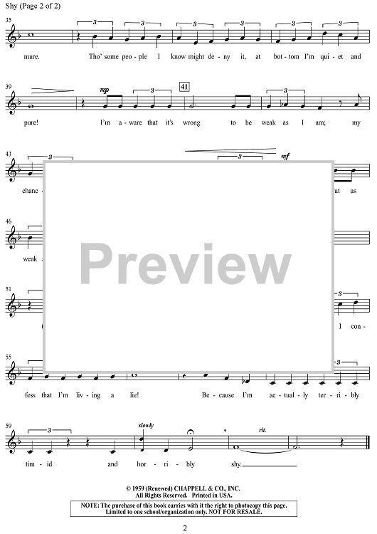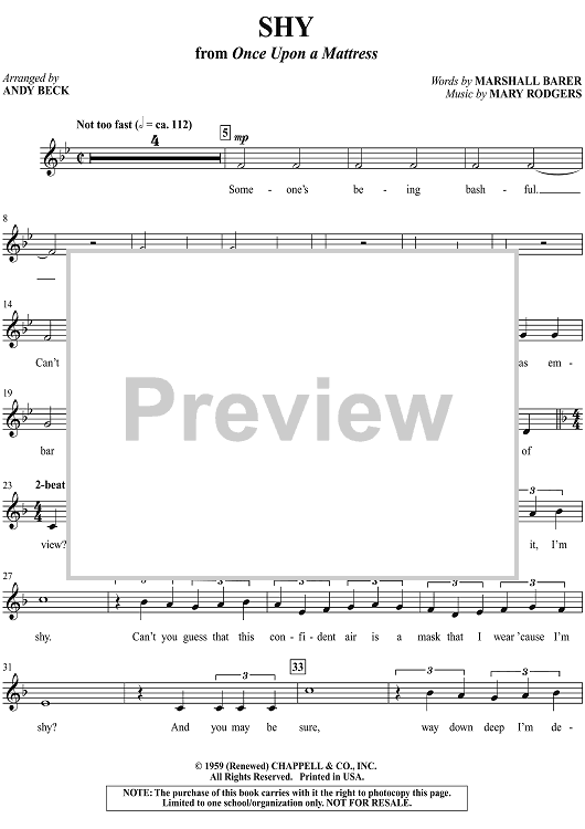 "Shy (from "Once Upon a Mattress")" Sheet Music by Mary Rodgers