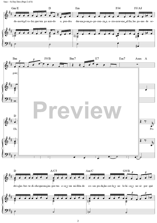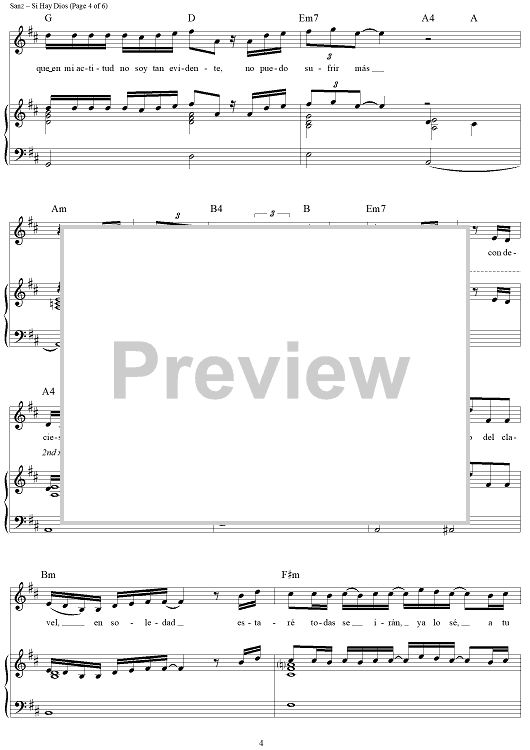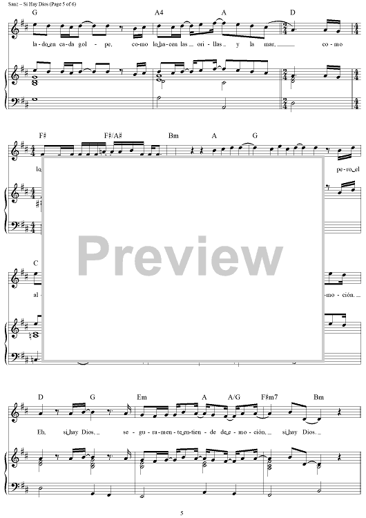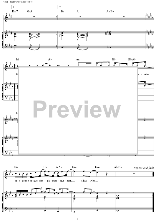 Digital Sheet Music for Si Hay Dios by Alejandro Sanz scored for Piano/Vocal/Chords; id:442072