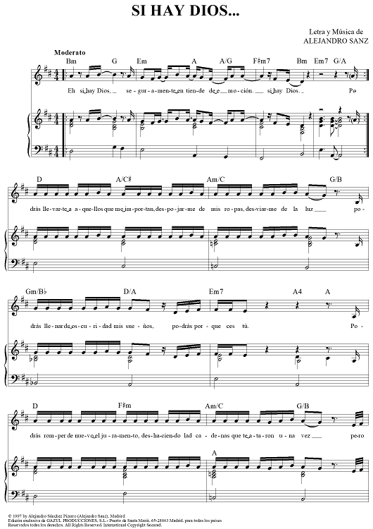 "Si Hay Dios" Sheet Music by Alejandro Sanz