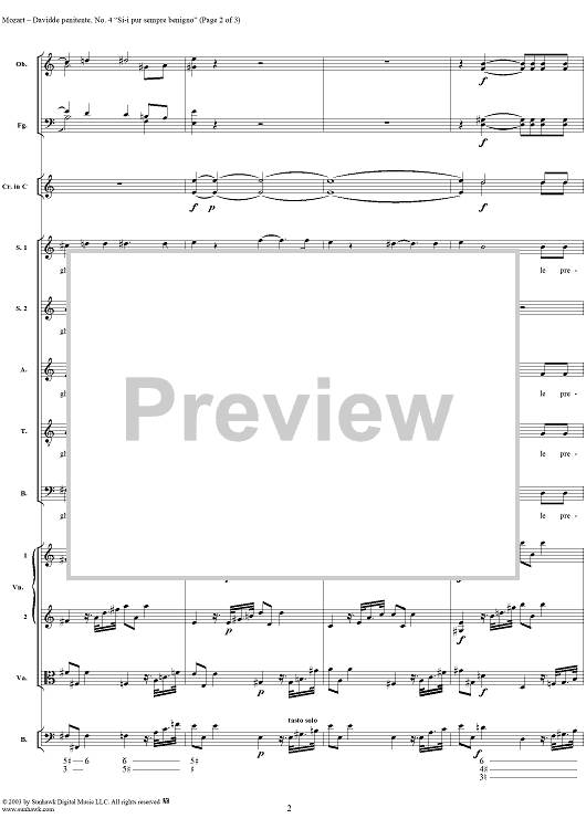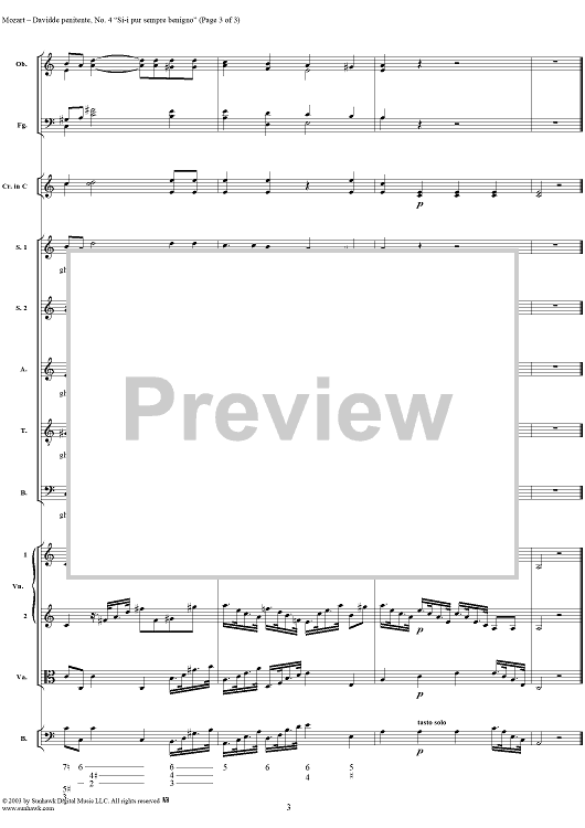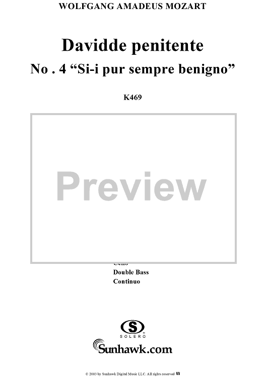 Digital Sheet Music for "Si-i pur sempre benigno", No. 4 from "Davidde Penitente", K469 - Full Score by Wolfgang Amadeus Mozart scored for Voice and Orchestra; id:292156