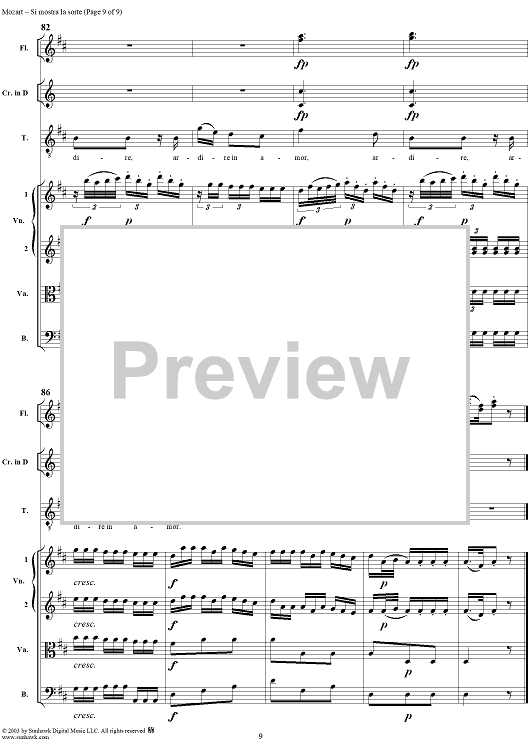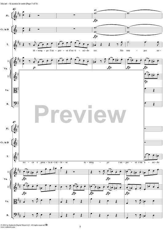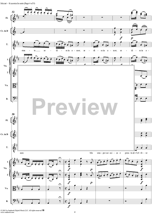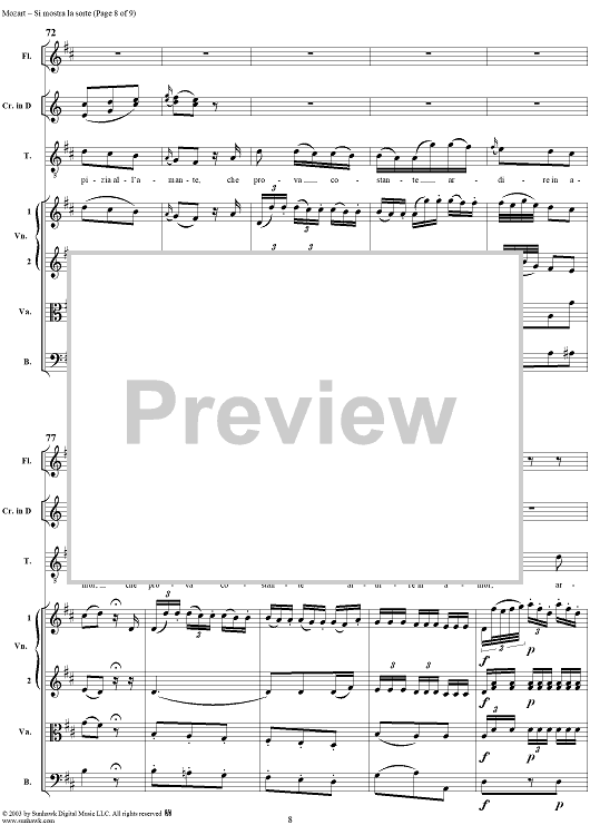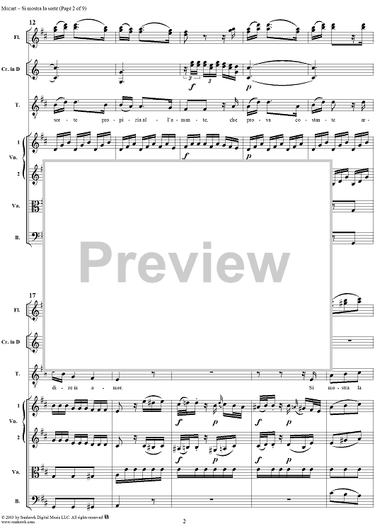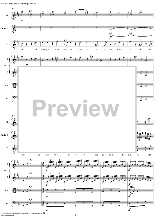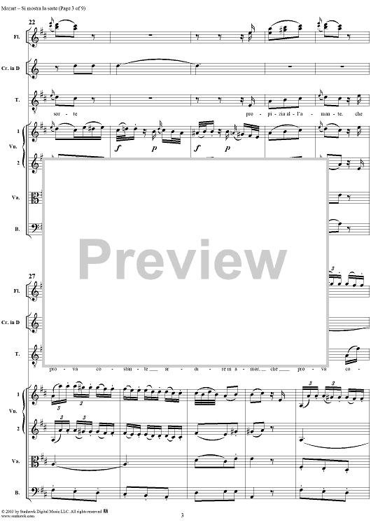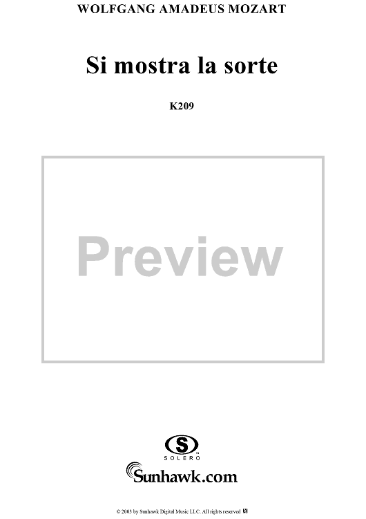 ""Si mostra la sorte", aria, K209 - Full Score" Sheet Music by Wolfgang Amadeus Mozart