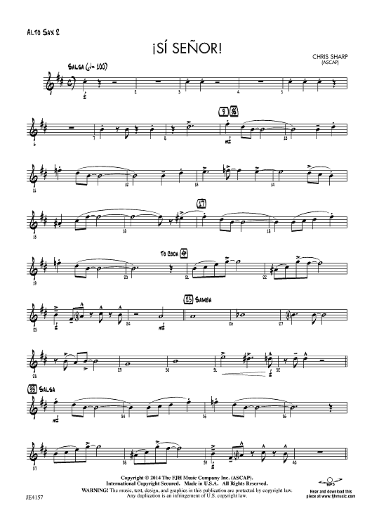 Digital Sheet Music for Si Señor! - Alto Sax 2 by Chris Sharp scored for Jazz Ensemble; id:446689